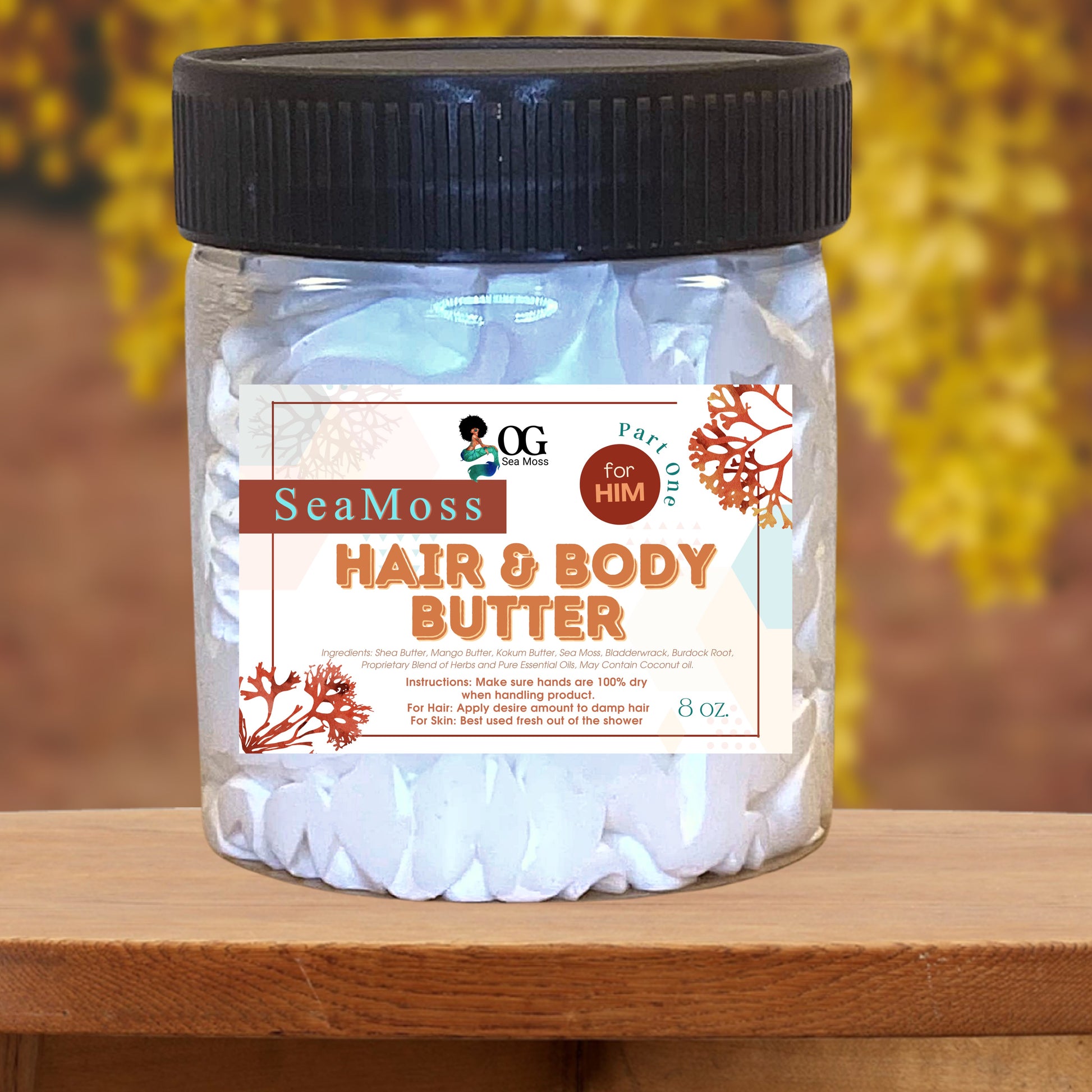 Ingredients: Shea Butter, Mango Butter, Kokum Butter, Sea Moss, Bladderwrack, Burdock Root, Proprietary Blend of Herbs and Pure Essential Oils, may contain coconut oil